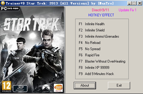 星际迷航修改器,具有修改游戏中无限生命、无限弹药、无限护盾等6项实用功能,对应游戏版本Steam第一次更新版.