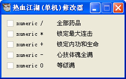 热血江湖单机版修改器简单的5项功能修改器,能修改药品和等级,让您轻松的完成游戏。