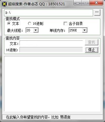 超级搜索是一款硬盘搜索软件,电脑中存的文件随着时间的推延,越积越多,需要时就很难找到,超级搜素就可以帮助用户在自己的硬盘中搜索所需要的文件,硬盘搜索器可搜索16进制文件和文本文件,包含子目录。