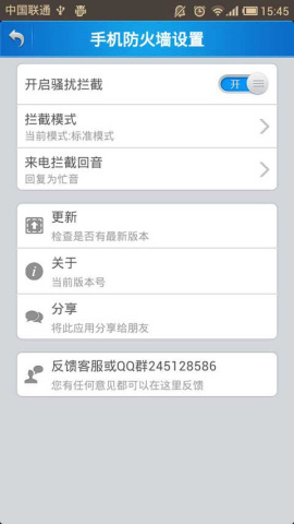 《365天天拦截》您还在担心广告推销、房产中介、恶意骚扰的人疯狂的电话呼叫吗?手机防火墙帮您摆平这一切!垃圾电话、短信统统添加黑名单,拦截尽在你的掌握;您可以只拦截黑名单,也可只接受白名单。拦截模式您做主,轻轻松松防骚扰!【功能介绍】