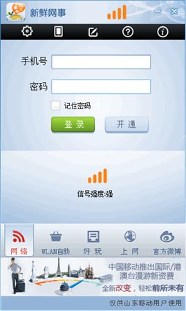 待机推送能在用户使用时省去了下载时间,阅读十分流畅。客户端同时提供中国移动WLAN网络接入功能,方便用户高速浏览新闻资讯及下载应用,让你享受无线上网冲浪的精彩。