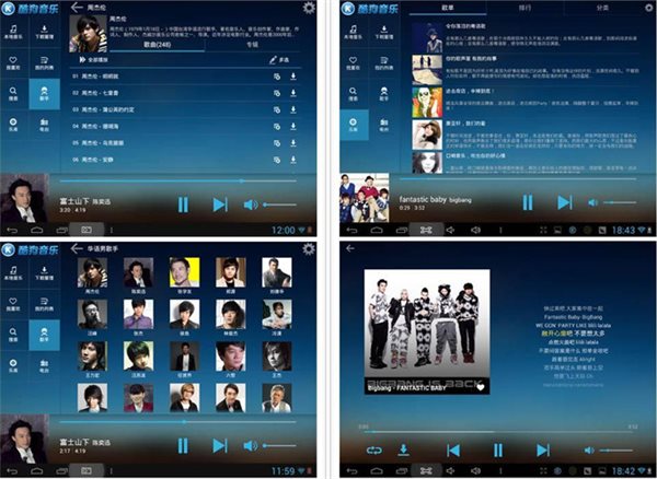 酷狗音乐Android pad版清爽简单的界面,便捷的操作体验,给用户带来更好的Pad听歌体验。