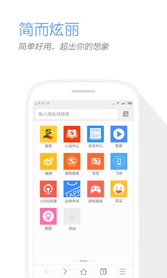 搜狗手机浏览器安卓版具有WIFI预加载、收藏同步、夜间模式、无痕浏览、自定义炫彩皮肤、手势操作等众多易用功能。首创“网页关注”功能,将网站内容以订阅的方式提供给用户浏览。 搜狗手机浏览器网页打开速度更快,电量消耗更小,同时更省流量。简洁清爽的视觉设计和简单流畅的操作交互,将搜狗浏览器从PC端成功延伸到移动端。【搜狗手机浏览器软件特点】