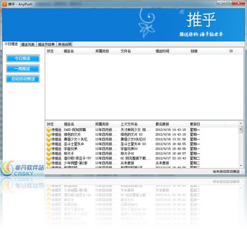 推乎一款新概念的推送软件,不同于以往的聚合阅读器,只能在网站提供了RSS才可以聚合抓取信息,推乎可以根据用户自定的表达式来抓取不同网站的资讯,并实时推送到桌面,是将推送的主动权控制在客户端的手中的推送软件。