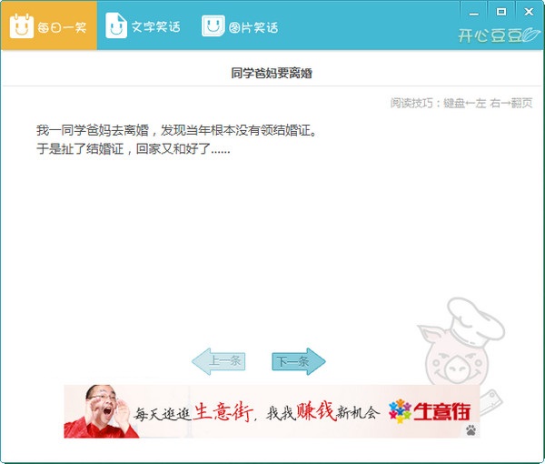 开心豆豆每日奉送最精彩搞笑段子,让你快乐每时每刻。绝对是您居家旅行、行走江湖的必备猛药!