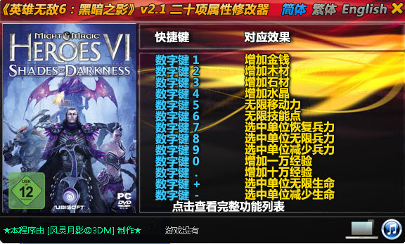 英雄无敌修改器是同名游戏英雄无敌6:黑暗之影的二十项修改器,修改了金钱,木材等属性,让游戏更有可玩性.