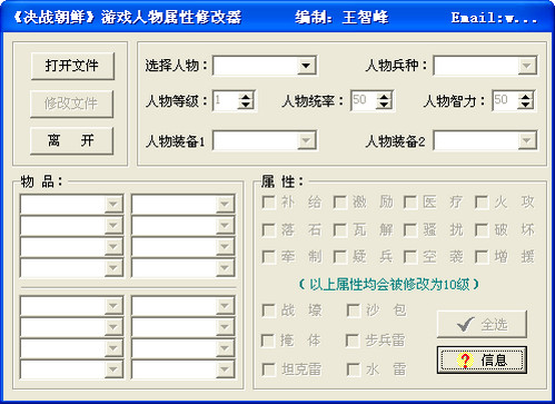 决战朝鲜属性修改器能修改人物属性,等级,功能强大帮您轻松完成游戏