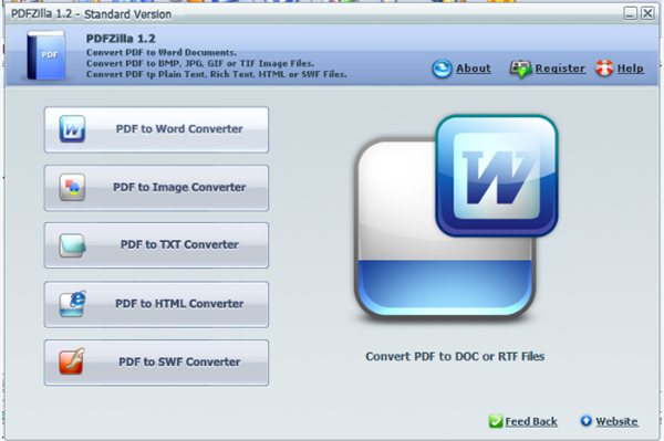 PDFZilla是一个pdf格式转换软件,它可以把pdf转换成word、图片、txt、html和swf格式。这个软件对于那些要写论文的人太重要了,因为下载的论文文献都是pdf格式,使用这个软件可以把pdf格式的论文直接转换成word,这样可以直接摘抄其中的段落,并且也适合搜索你要的论文信息哦。PDFZilla的界面是英文的,但是操作极其简单,简直闭着眼睛都可以。