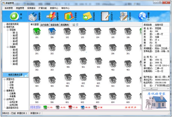 房屋出租管理系统是专门为出租房房屋管理设计,适用于“公寓出租”,“农民房 出租”,“床位出租”等房屋租赁领域,系统根据房屋租赁行业的实际需求开发了,批量 录入出租信息,批量抄水电表,批量收款,批量打印等实用便捷的功能,同时应广大屋 管理人员的要求,我们开发了安全云备份功能,智能短信平台,工作日志,支出记录等 满足办公需求的功能。我们努力将房讯《出租房管理系统》打造成为一款功能强大,操 作简单的,界面人性化的房屋管理系统!