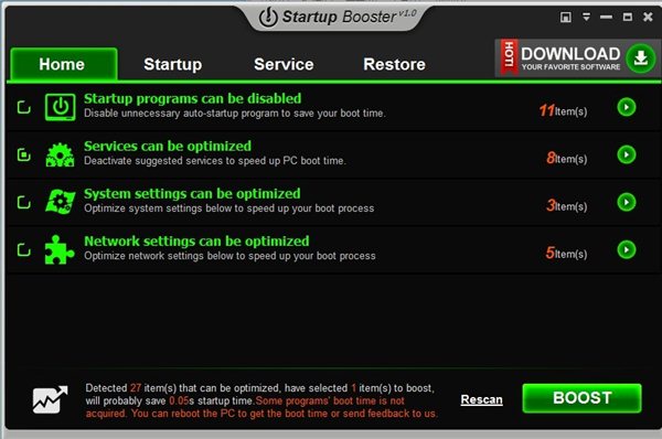 开机启动优化(Anvi Startup Booster)优化开机速度,能够帮你关闭非必要的开机启动软体与服务,以达到快速启动效果,并且帮你预估可以节省多少时间唷!