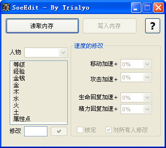 使用方法 运行游戏,启动修改器,从修改器读取内存然后进行修改