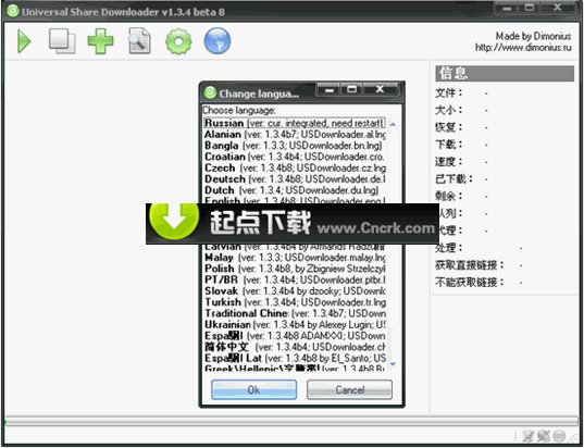 USDownloader 可以帮助你从国外的软件共享网站下载 IE 无法下载的文件。例如:RapidShare等。因汉化的是语言包,部分字词会显示为英文