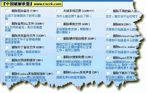 精心打造了Xp减肥茶,减肥选项应该算全的啦。希望各位喜欢~绿色软件。只有一个文件。注:有XP安装盘,都可以安全删除,但要看你方便不~没安装盘注意看注释