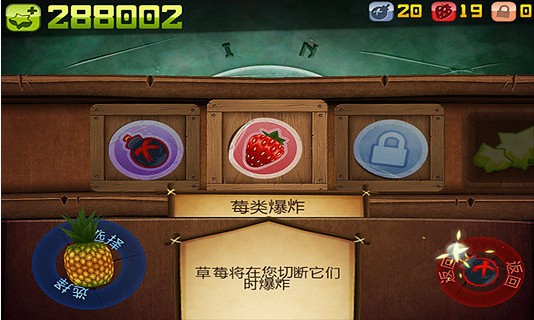 10.水果和炸弹一起出的话没有把握可以选择舍弃水果,有失才有得嘛,因为炸弹会给你造成毁灭性的打击,会炸掉你香蕉的技能和blitz,还会扣掉十分,如果在双倍情况下切到炸弹,会炸掉双倍之后所有的分数,等于你切到双倍之后所有的水果都是白切,这个时候可以考虑重来。
