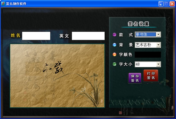 不是所有人的名字都可以设计成一笔签名的,部分字可能比较复杂,无法使用一笔签,所以本软件还提供了其他款式使用,有公文签、英文签、硬行体、篆印体、草书体、行草体。