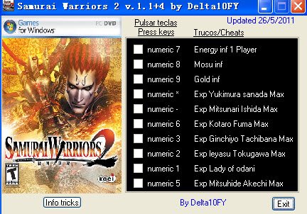 战国无双2修改器是同名游戏战国无双2的四项属性修改器,修改了游戏经验和金钱等四项属性,让玩家更好的享受游戏带来的乐趣.