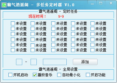 霸气逍遥阁多任务定时器是一款可定时播放和定时运行程序的工具,最多可使用30个任务,可执行不同任务,添加一个任务后会自动保存任务要求。