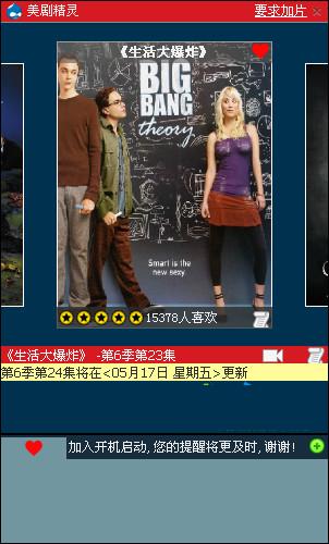 ②美剧更新提醒:(点击美剧封面右上角的“红心”可一键添加到“提醒”,届时您订阅的美剧更新时将会从桌面弹出提醒框)