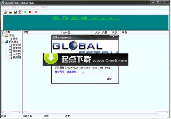 GlobalFetch 图片批量下载工具(简称GF)用于在互连网上快速搜索并批量下载图片、Flash等类型的文件。只要指定一个初始网络路径,GF就可以沿着这个路径进行多级爬升搜索,在一般网路条件下,每小时可以完成数万张图片的搜索和批量下载工作。