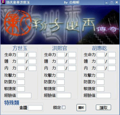 功夫皇帝方世玉讲述了少年英雄方世玉的日常生活,功夫皇帝方世玉多角色属性修改器为《功夫皇帝方世玉》多角色属性修改器。