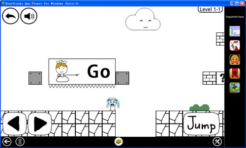 暴走大冒险中你要控制B君去救每关关底的尼玛公主,操作方面,在下面可以看到左右跟跳跃的按键。左右控制方向,JUMP跳跃。但以为游戏这么简单就弱爆了,暴走大冒险中地塌危房什么的都有,草丛还带德玛西亚什么的,还有意想不到的隐藏砖块。可能刚开始的时候你会说,什么都没有啊,看起来都很正常。恩,的确只是“看”起来正常而已……当你真正进入游戏后,才会发现,原本在你印象中非常安全的行为都变成触发各种陷阱机关的导火索,然后等待你的就是大大的“LOSE”!