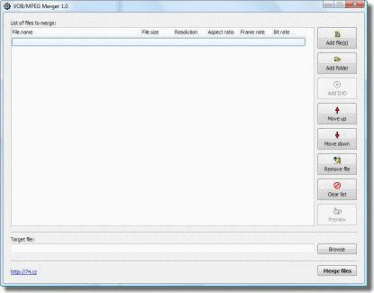 VOB/MPEG Merger是一个简单的视频合并软件,可将多个视频合并成一个单一的文件。 特点: 应用程序自带支持VOB和MPEG文件格式,提供快速的转换速度