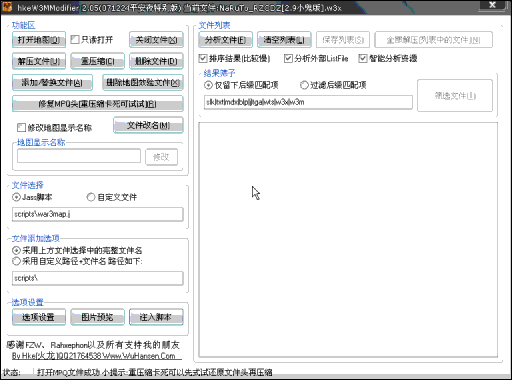 HkeW3mModifier这是一个修改MPQ格式文件的工具,可以修改加密过的MPQ文件,还带有强大的资源搜索功能,可以搜索出魔兽地图中大部分资源重建列表,解压模型能智能解压相关贴图。