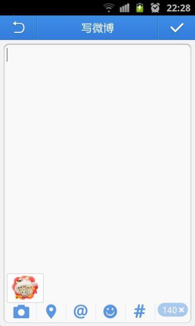 即拍即传的拍照功能,分享微博生活;丰富的媒体支持,包含多平台的表情,png,jpg以及gif动画等;