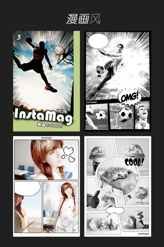 拼立得拥有200多种精心设计的模板,能够随意拼出10000多种组合,自己动手DIY出“高贵冷艳”的时尚写真,让你的相片高端大气上档次。拼立得的使用非常简单,不需要繁琐的步骤,只需要两步:先选择模板,然后再选择照片就可以了,你还可以为自己的封面添加上各种文字或视频,记录美好的瞬间,留住青春的回忆。