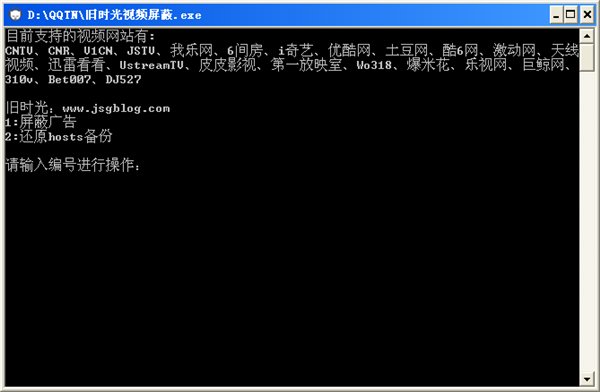 开启软件后,输入编号进行操作,1为屏蔽广告,2为还原hosts备份