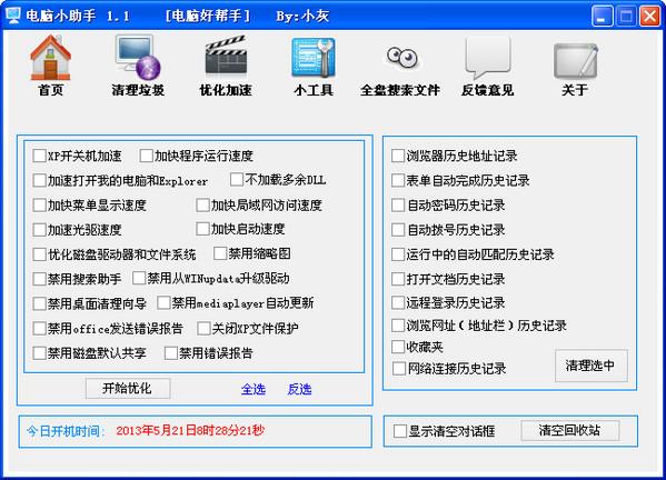 电脑小助手是一款多功能的电脑辅助软件,具备清理垃圾、优化加速、全盘搜索文件等常用功能,安全无毒,操作便捷,绝对是电脑新手的好帮手。