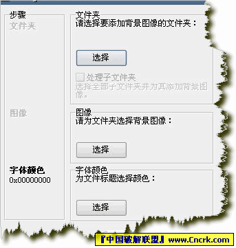 程序分为三步,选择文件夹,选择图片,为选择的文件夹添加图片,可以包括子文件夹。