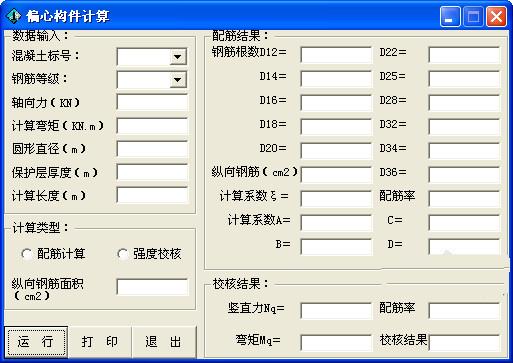 偏心构件计算是一款查询计算工具,是工程所不可缺少的工具之一,方便快捷准确!输入相应数据、计算类型,点击“运算”就可以得出配筋结果和校核结果。而且还支持打印功能。