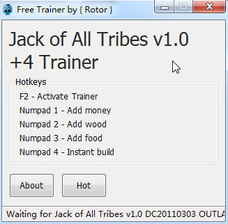 部落大救星杰克修改器+4 v1.0 绿色版 部落大救星杰克属于模拟类游戏,部落大救星杰克修改器可以修改游戏中的四项作弊功能,能帮助您轻松完成游戏,起点提供部落大救星杰克修改器下载。