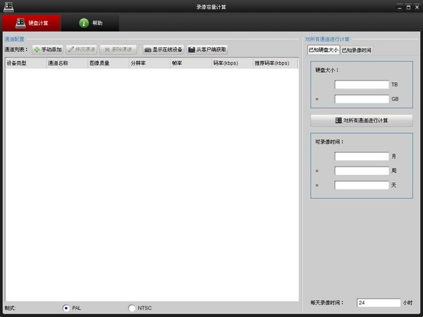 2.用来计算在一定的压缩参数下,一定的磁盘空间能够保存录像的天数。