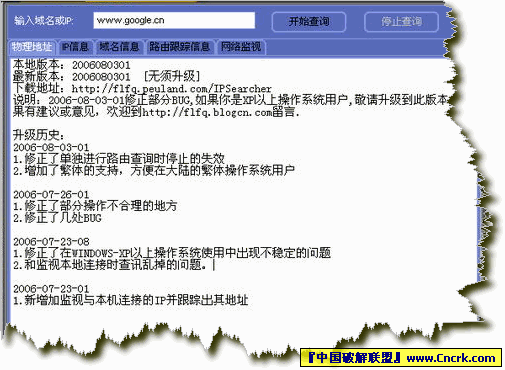 IP查讯追踪客2006.8.3.1 绿色版 功能: