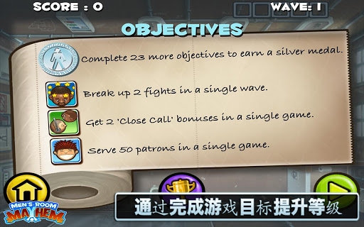男厕所尿尿指南 Men's Room Mayhem:这个游戏如果换成是女厕所版是不是更能引起共鸣,想必在绅士爱面子又尿急的情况下是不会在银行角落尿尿的,最后还得谴责银行没有厕所设施。游戏采用了素描风格,主要描述了男厕所里的礼节问题。玩家扮演的是厕所门卫,主要工作就是引导尿急的绅士们准确无误地排泄进小便池。如果让绅士们等得太久,他们就会变“野兽”,尿到地板上。(尿急的人是会失去理智的)可想而知,清扫就变成你的工作了。如果你破坏了男厕所那些不成文的规矩,甚至会让大家大打出手,想要大家尿尿有风度,那就得保持好队形。