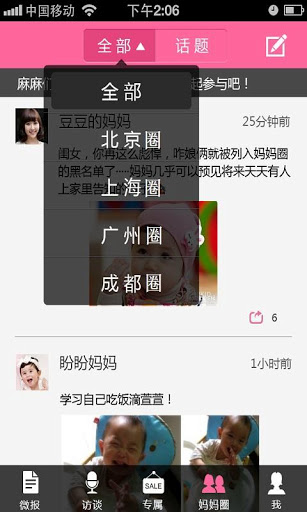 从九年前创建伊始,妈妈网凭借全国妈妈网民的口碑相传和持续活跃,迅速成为中国最具人气的网上女人社区。时至今日,妈妈网又开始了在手机母婴App领域的新征程!2013年4月1日,旨在打造中国最大女性掌上生活社区的“妈妈圈”应用重磅推出!