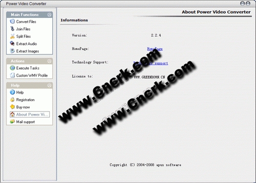 Power Video Converter可以在AVi, MPEG1, MPEG2, VCD, SVCD, DVD, WMV, ASF, DAT, VOB文件格式之间进行转换,同时具有很快的转换速度和友好的使用界面