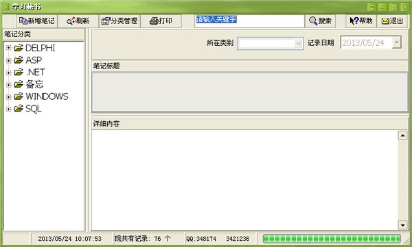 学习秘书是一款可以随手记录相关日记的单机版软件,可以记录日记、银行卡号,汇款收据,备忘录等!实在是一款不可多得的好软件!
