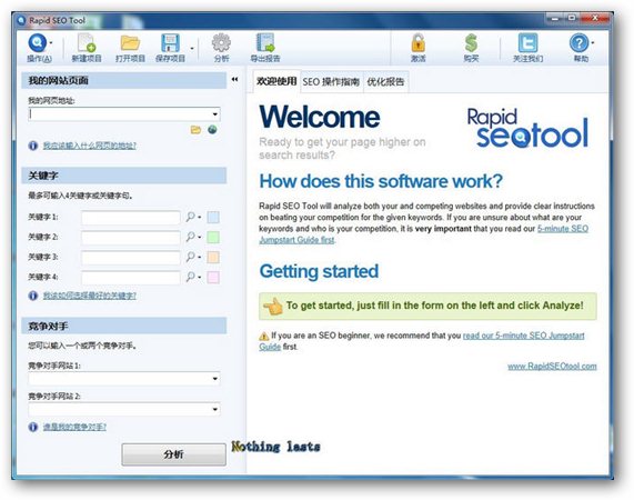 快速搜索引擎优化工具(Rapid SEO Tool) v1.3 汉化特别版 快速搜索引擎优化工具是独特的搜索引擎优化软件设计减轻任务获得更高的搜索结果网页。它会随便看你的网页代码,建议应该改进什么,从而获得更好的结果。你甚至不需要一个搜索引擎优化的专业。