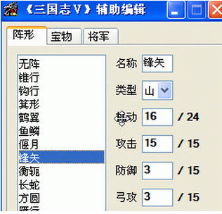 使用方法 1:解压文件 2:将修改器放入到游戏根目录下,打开修改器,你可以修改阵型,宝物,将军的属性 3:启动游戏