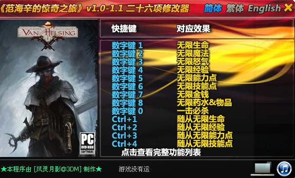 范海辛的奇妙冒险v1.0-Update1 拥有二十六项修改器,能帮助您轻松完成游戏。