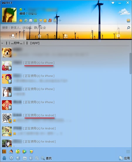 qq2013移动终端图标正常显示补丁可以解决qq2013不显示手机在线的问题,自从qq2013改版后我们就看不到好友到底是手机在线、iphone在线、微信在线还是pc端在线,这样非常不方便,有时候要传个文件还等一个个问一下到底是不是电脑在线以免文件接收不了。