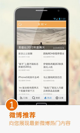 ①精选海量微博优质资讯,热点全掌握