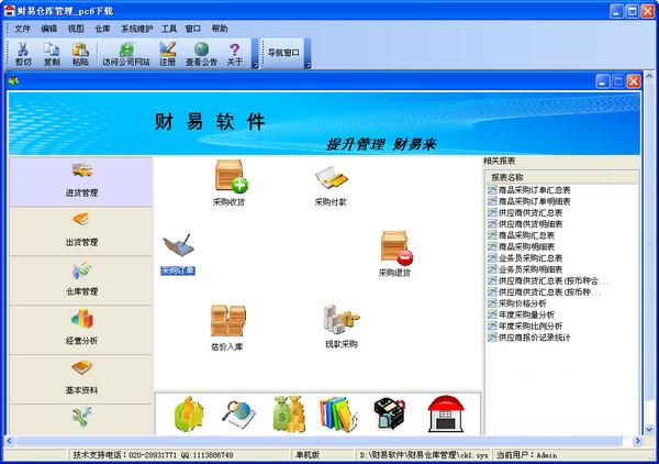 财易仓库管理软件主要分为销售管理,采购管理,仓库管理,基本资料,系统设置(权限管理)五大部分主要功能包括: