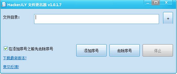 HackerJLY文件更名器是一款可以在指定文件夹里所有的文件名前添加或者去除序列号,让用户可以批量更改指定文件夹的文件名,方便管理.