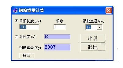 钢筋重量计算输入钢筋的单根长度、根数、直径、总长度,可计算出钢筋重量。