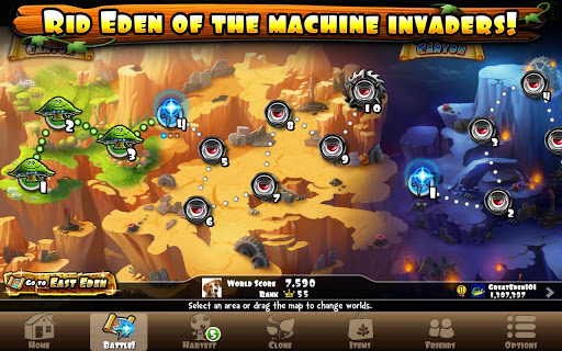 《绿色乐园 Eden to Green》是一款塔防游戏,玩家需要种植植物来抵御怪兽的入侵。和《植物大战僵尸》的规则地图不同,在《绿色乐园 Eden to Green》中,地形没有边界,玩家可以随时扩张自己的领土,摆出自己的防御阵型。让绿色的草地蔓延不仅可以让游戏世界更好看,还会获得更多的资源,种植威力更强大的植物。当整片地图都变成绿色的时候,玩家就赢下了这场比赛。【游戏特色】