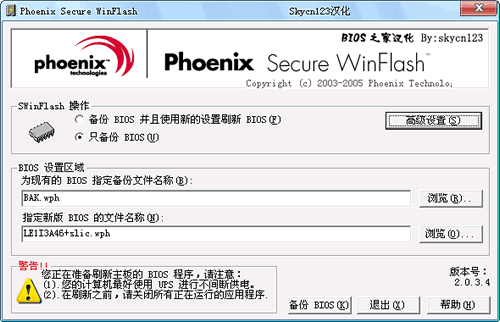 WinPhlash是联想主板 Phoenix bios 刷新工具 Phoenix BIOS写入工具WinPhlash 2.0.3.4版 !